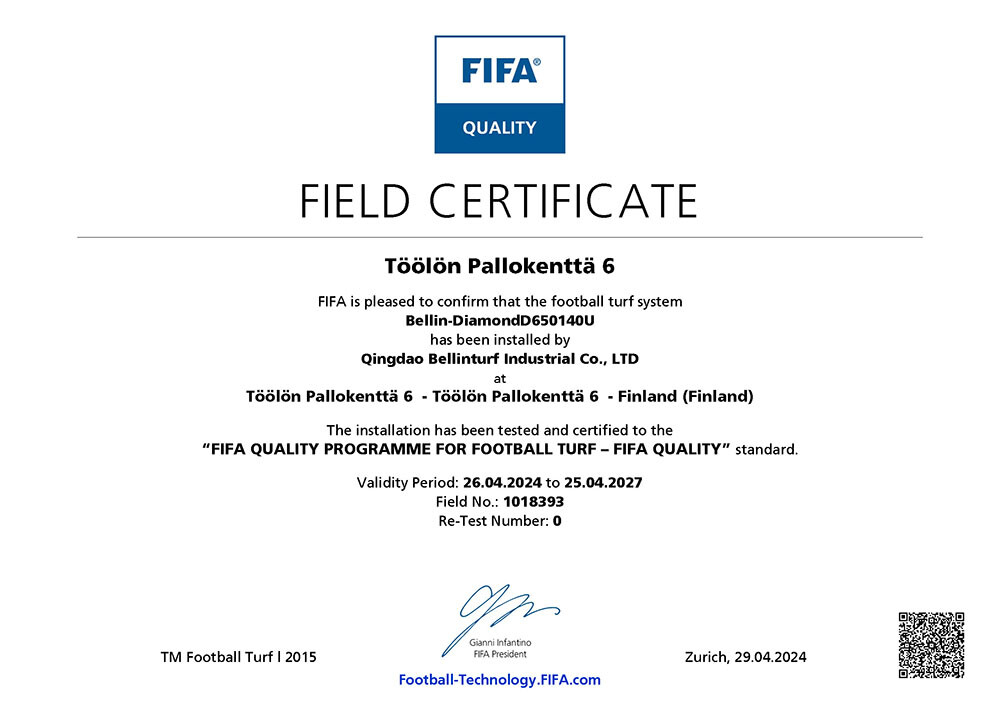Bellinturf presta especial atención al desarrollo sostenible de la innovación y la tecnología de productos. Hasta ahora Bellinturf ha obtenido más de 50 patentes autorizadas. Como fabricante certificado de FIFA y FIH, Bellinturf cumple con estos y muchos otros estándares de la industria de las federaciones deportivas, así como con los estándares REACH, RoHS, EN-15330 y CE.